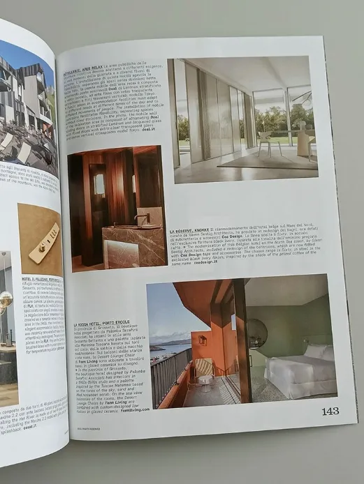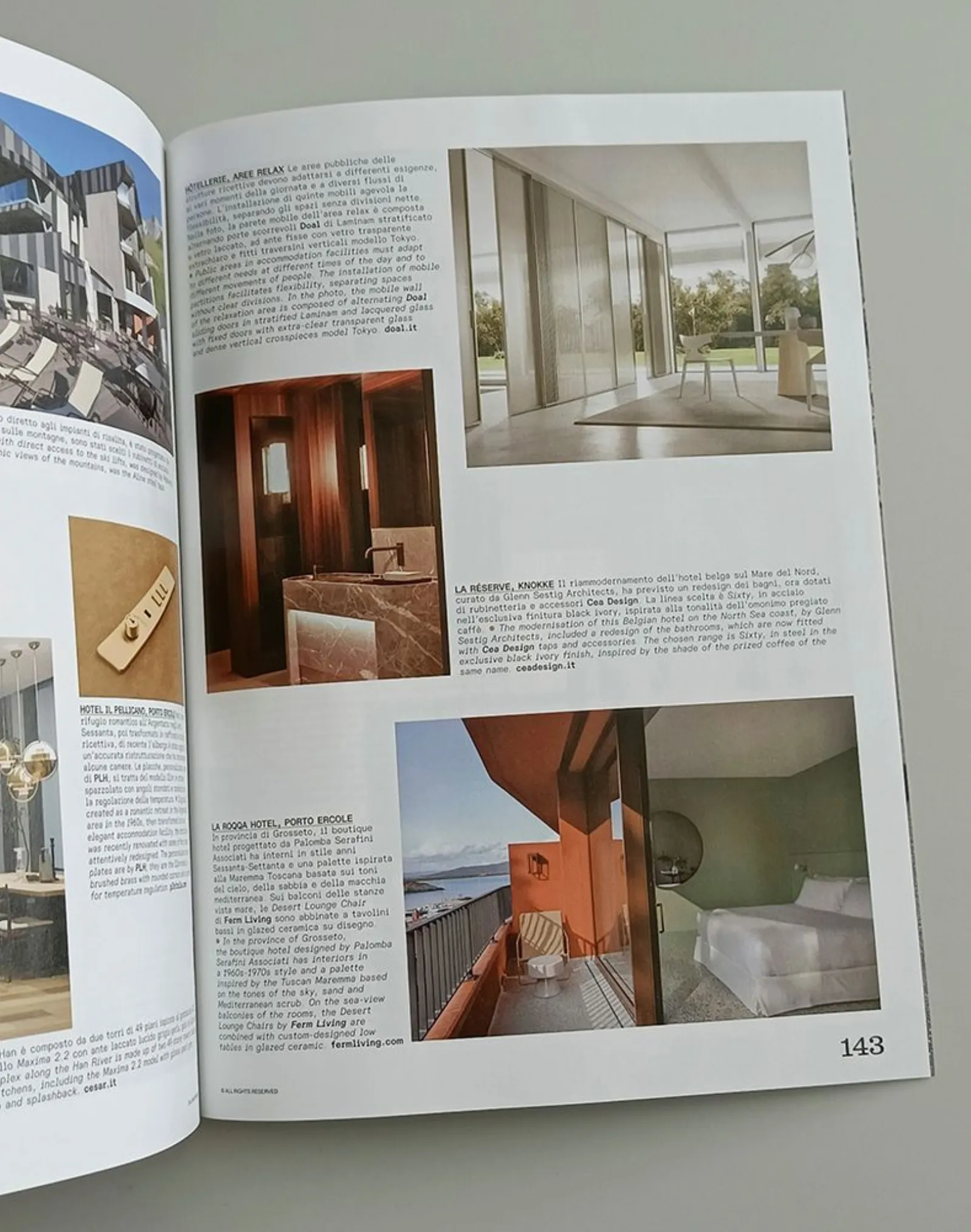 Le aree pubbliche delle strutture ricettive devono adattarsi a differenti esigenze, ai vari momenti della giornata e a diversi flussi di persone. L'installazione di quinte mobili agevola la flessibilità, separando gli spazi senza divisioni nette. Nella foto, la parete mobile dell'area relax è composta alternando porte scorrevoli Doal di Laminam stratificato e vetro laccato, ad ante fisse con vetro trasparente extrachiaro e fitti traversini verticali modello Tokyo.