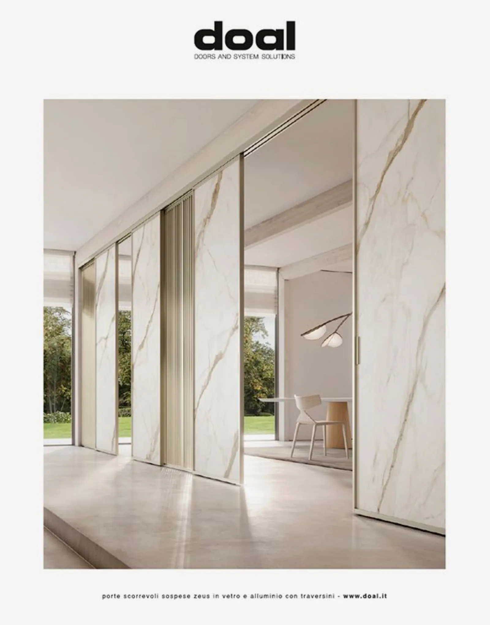 In edicola su Abitare la porta scorrevole sospesa Zeus crea ambienti di moderna raffinatezza. I profili perimetrali che delimitano le porte con una linea pulita ed essenziale, sono stati realizzati in finitura champagne. Si alternano porte scorrevoli con Laminam stratificato, il vetro laccato ed ante fisse con vetro trasparente extrachiaro, i fitti traversini verticali modello Tokyo sono un tocco di classe e creano geometrie minimali.