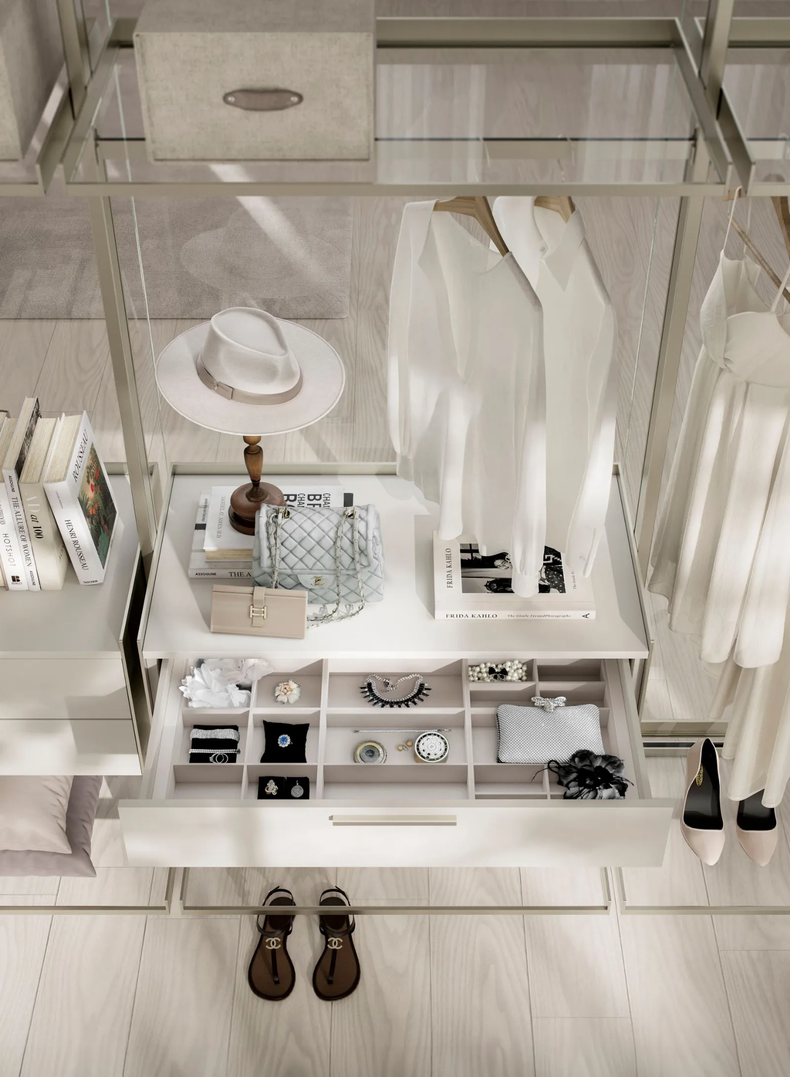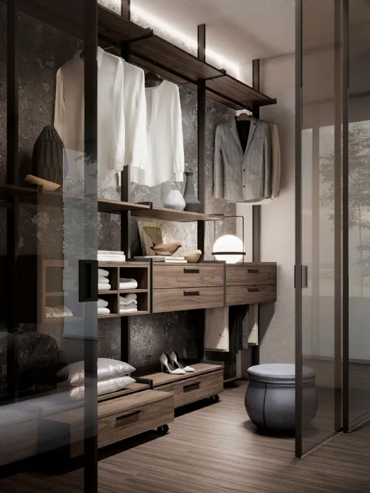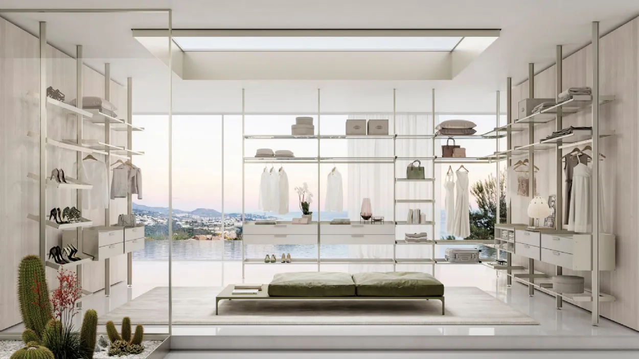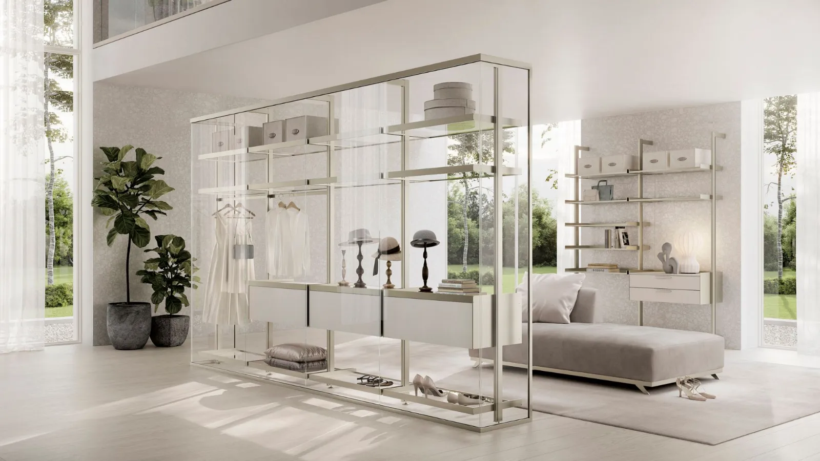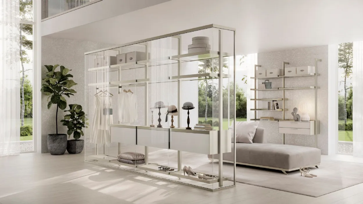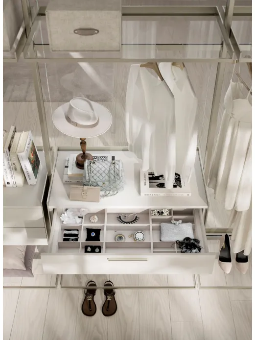 L'arte dell'organizzazione è fondamentale quando si tratta di sfruttare al meglio lo spazio con Venere, una cabina armadio che si adatta ai propri gusti e risalta lo spazio abitativo. La cabina armadio venere può essere attrezzata con ripiani, contenitori, cassettiere sia in vetro che nobilitato liscio o laccato. Ulteriori contenitori come porta pantaloni, contenitori multi-vano, specchi e porta TV ne ampliano non solo l’aspetto estetico ma anche funzionale.