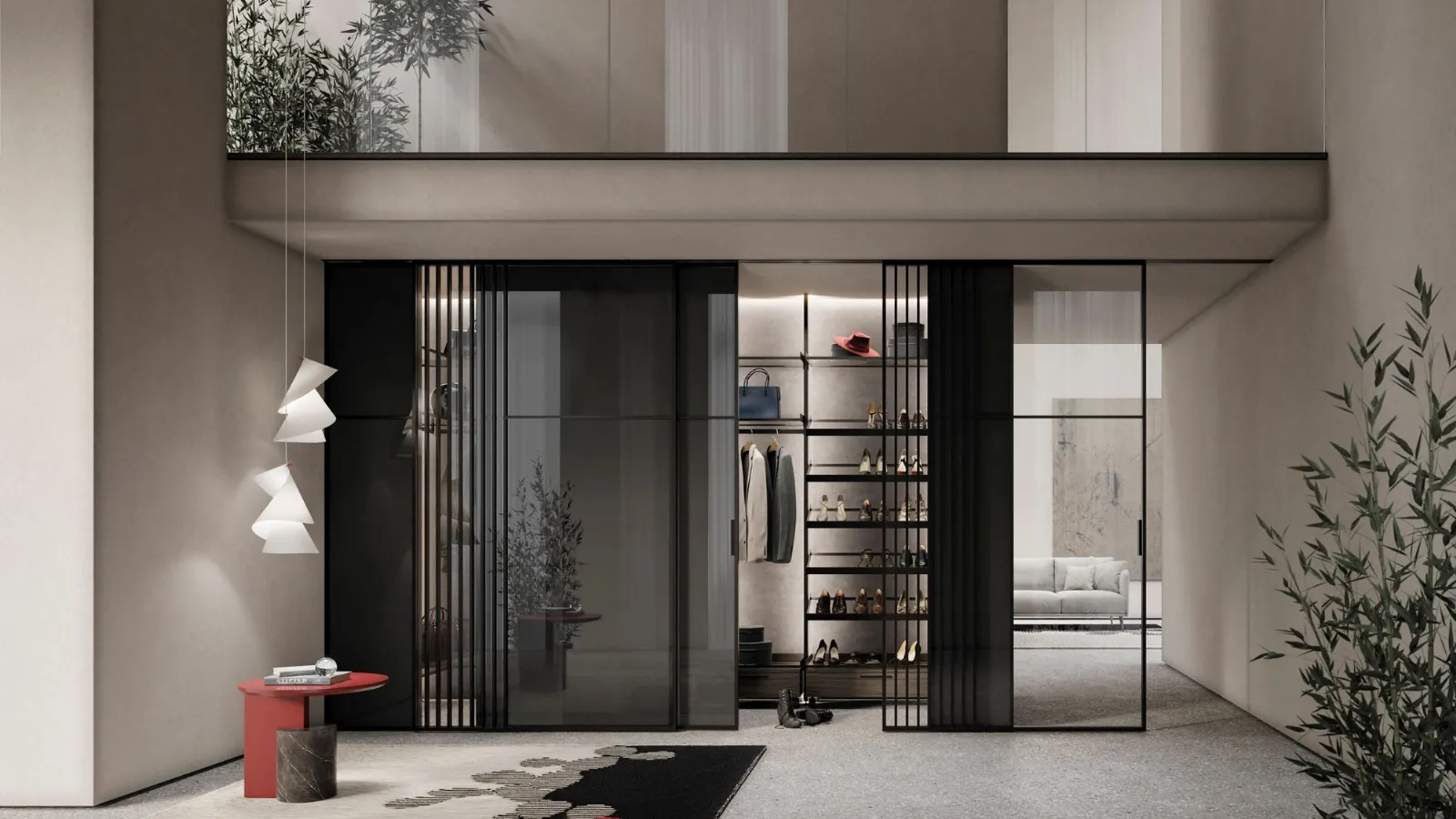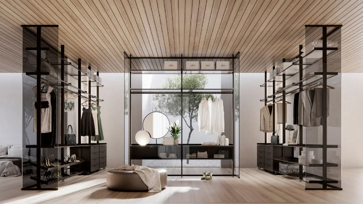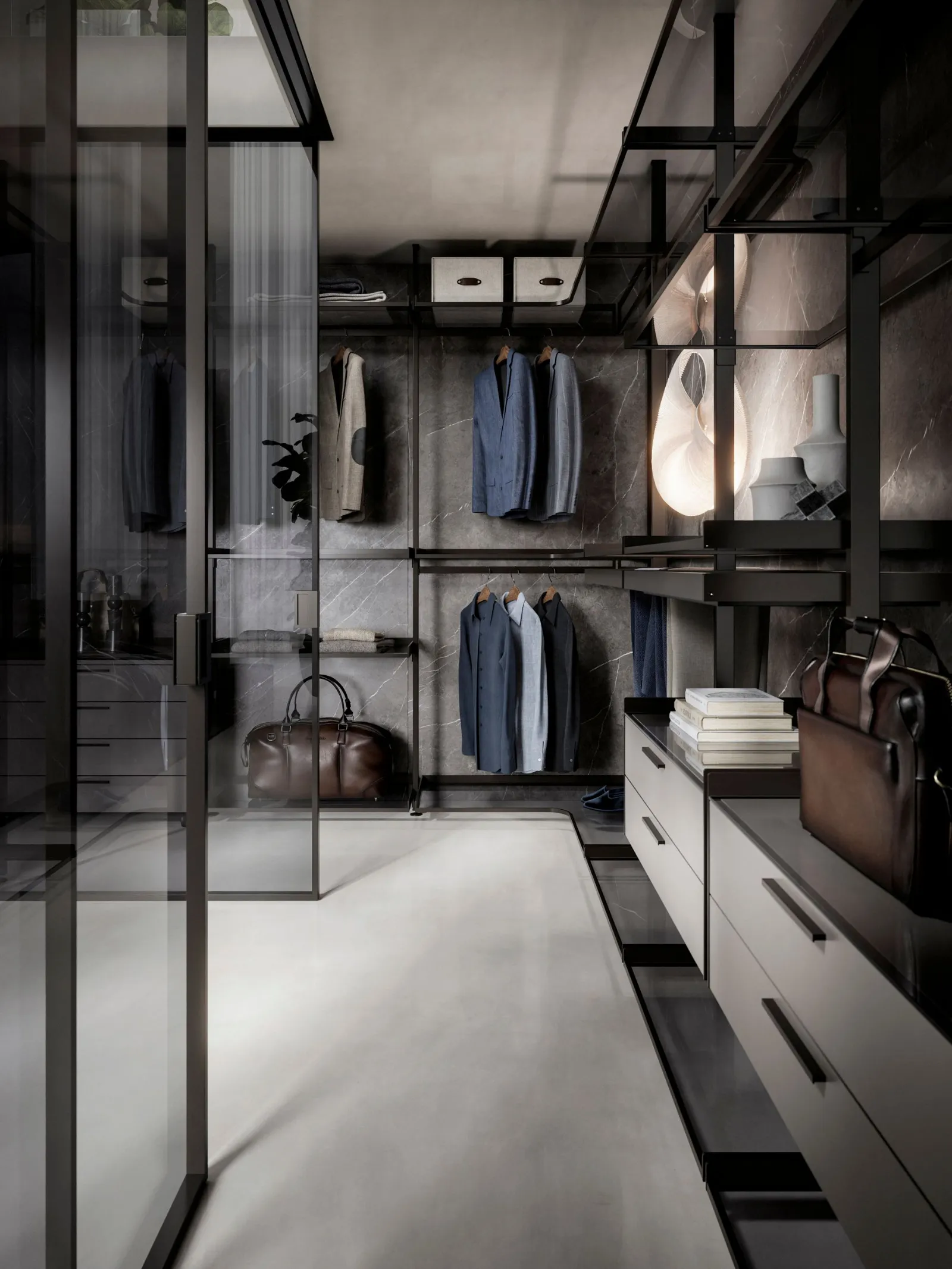 Venere è realizzata con montanti in alluminio, materiale resistente e versatile, questa cabina armadio si distingue per il suo design sofisticato e raffinato, capace di resistere al passare degli anni e alle mutevoli tendenze della moda, grazie alle molteplici scelte delle finiture e dei vetri che la caratterizzano. Dispone inoltre dell’illuminazione a LED nel retro del montante per creare atmosfere uniche.