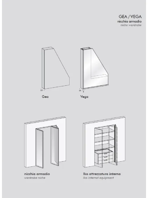 Possibilità di personalizzare con accessori come ripiani, specchi, divisori, portaoggetti e maniglie per ottenere l'aspetto desiderato.