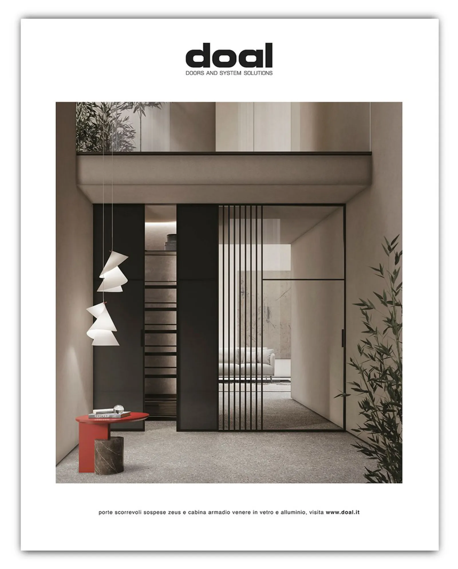 Zeus scorrevole sospesa e cabina armadio Venere su Elle Decor n. 5