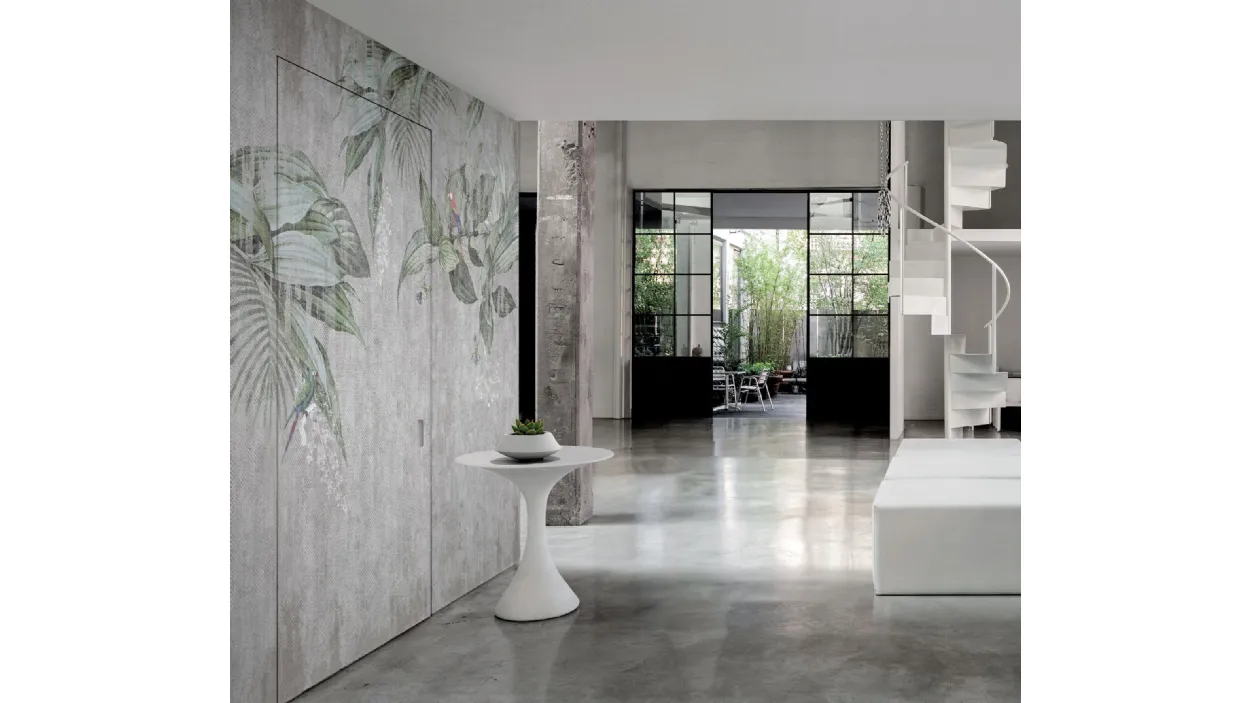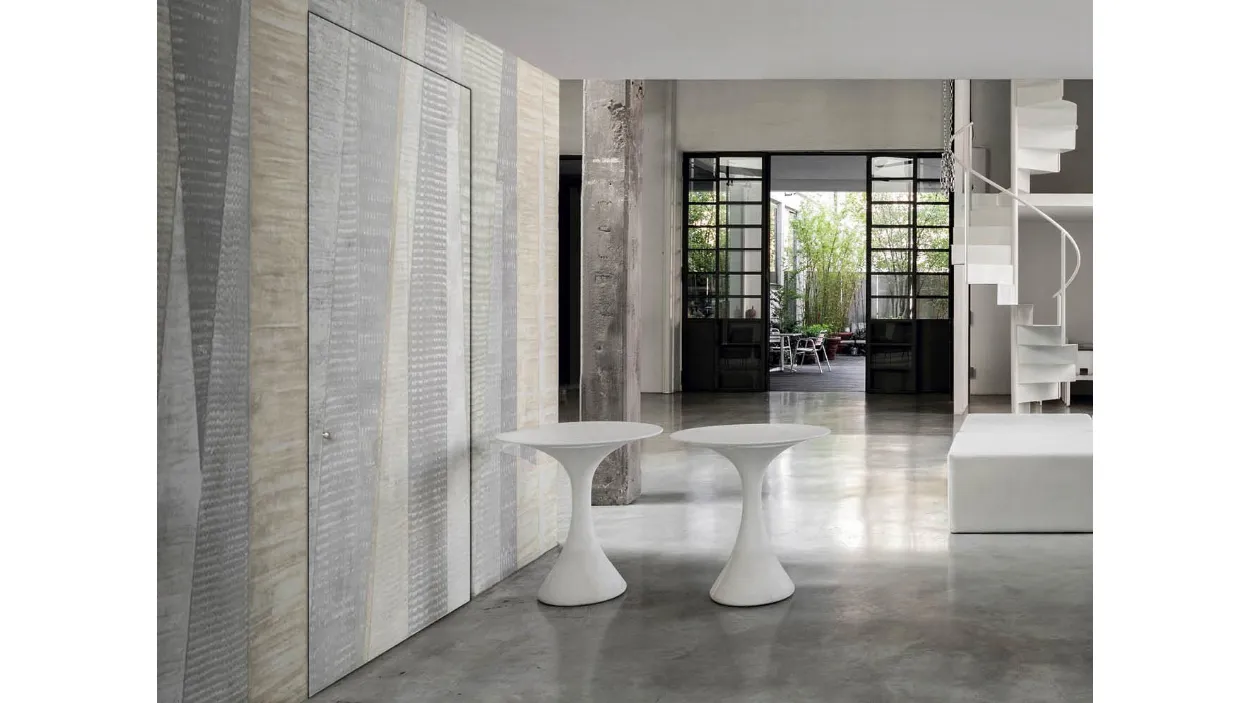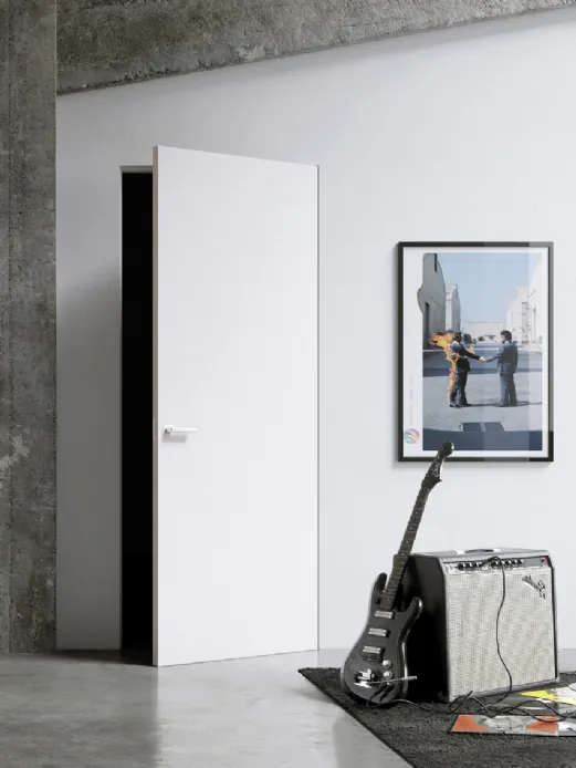 Quando si vuole inserire una porta battente nascondendola il più possibile, si può scegliere la porta Gea battente filo muro che, pitturata come il muro, diventa semplicemente una porzione di parete riconoscibile solo per una fessura sottile che la delinea e per la presenza della maniglia che ne indica la possibilità di apertura.