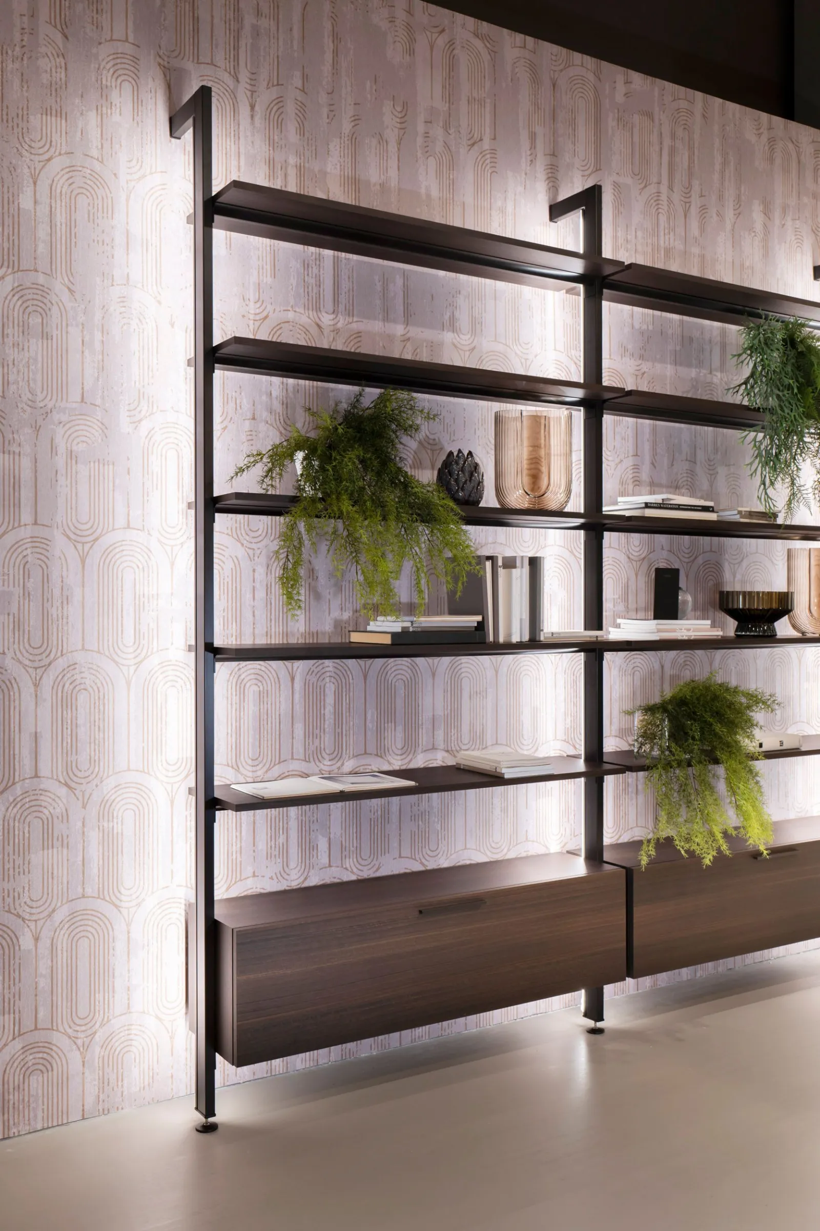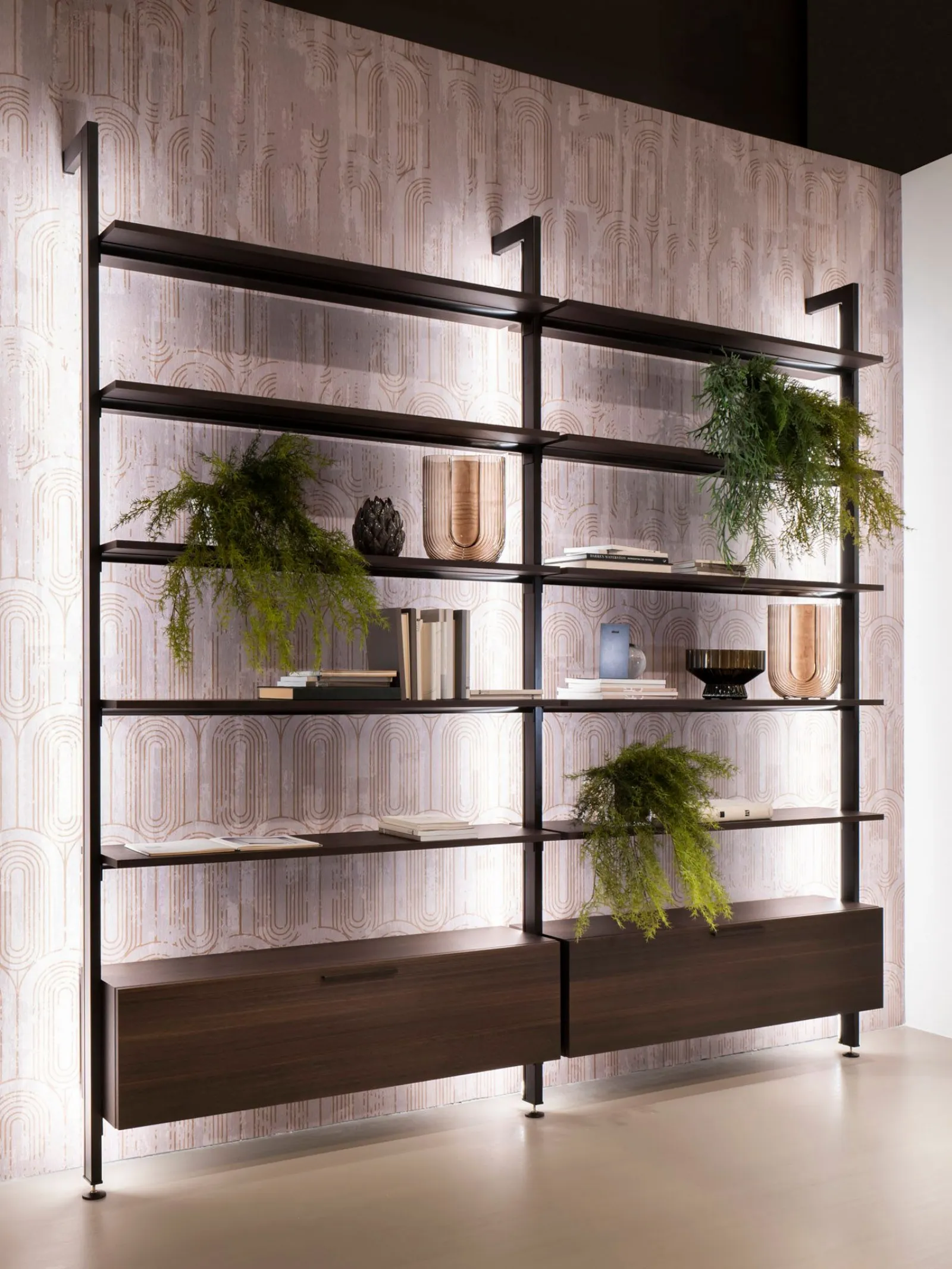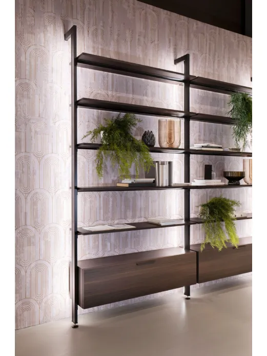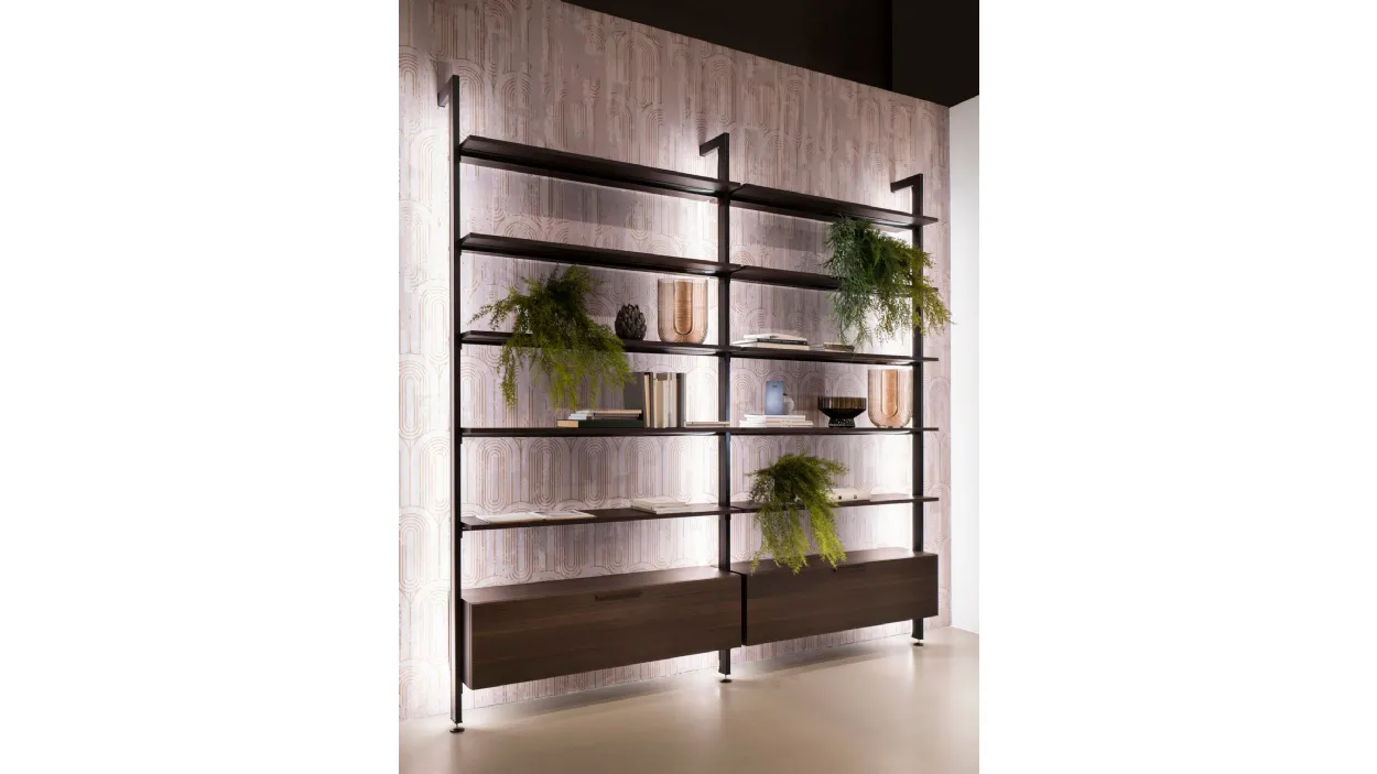 I ripiani di Karin in legno sono sostenuti da una barra sottostante, verniciata in tinta con i montanti, oltre ad avere una maggiore solidità anche nel tempo sono ben definiti, creando un design unico nel suo genere.