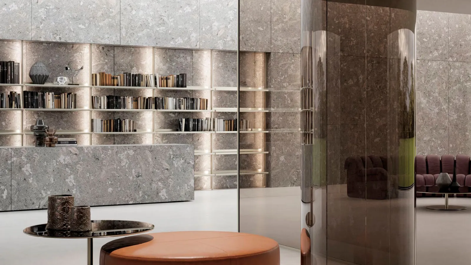 Karin ha molteplici accessori come l'illuminazione LED retro-montante per poter dare risalto agli oggetti può essere posizionata in una hole, in un open-space, in una zona living, in ambienti d'ufficio oppure nei negozi.