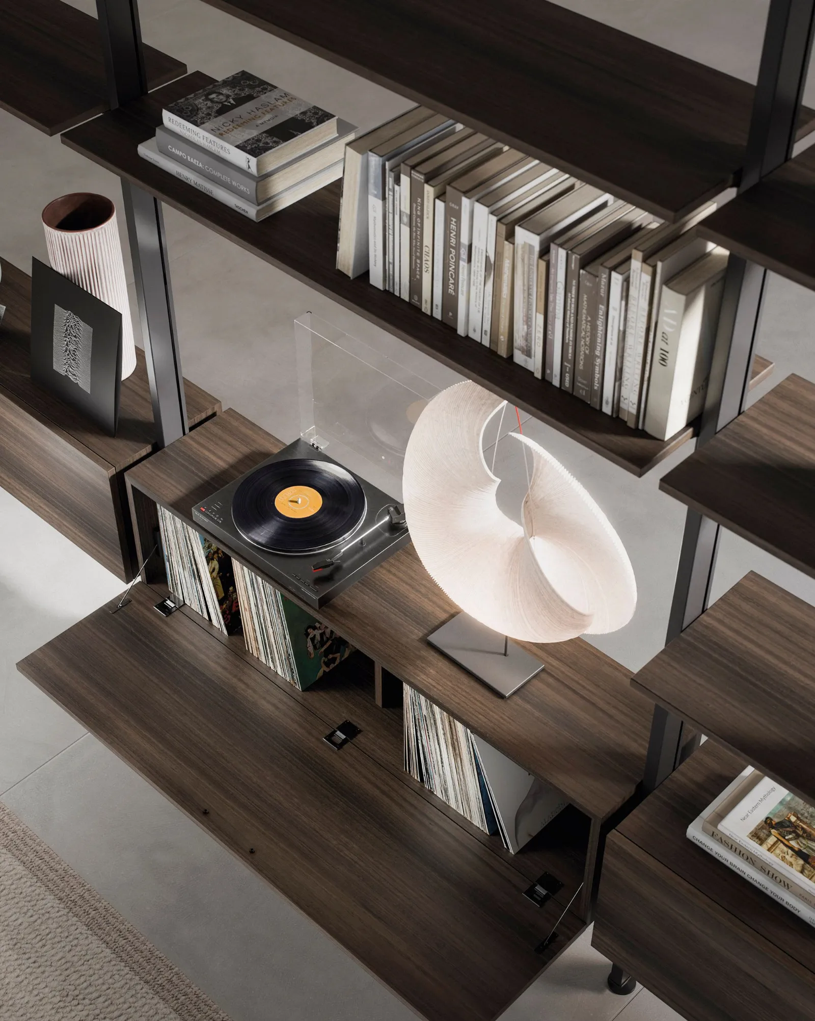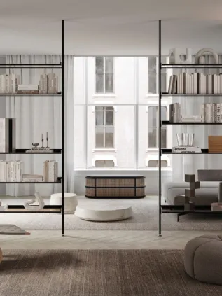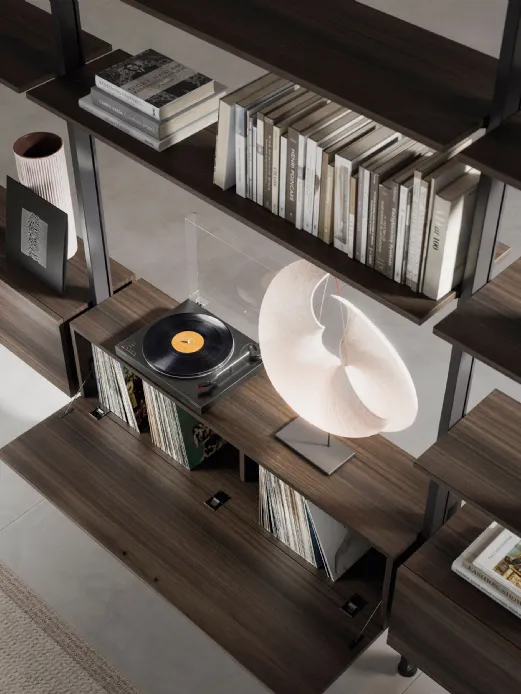 Nelle librerie i contenitori sono una scelta esenziale per disporre i propri oggetti o cose private creando così uno spazio peronale ma accessibile. I contenitori hanno la scocca realizzabile in legno Noce Canaletto, Eucalipto o legno laccato, l’anta a ribalta invece è disponibile sia in legno che in vetro.