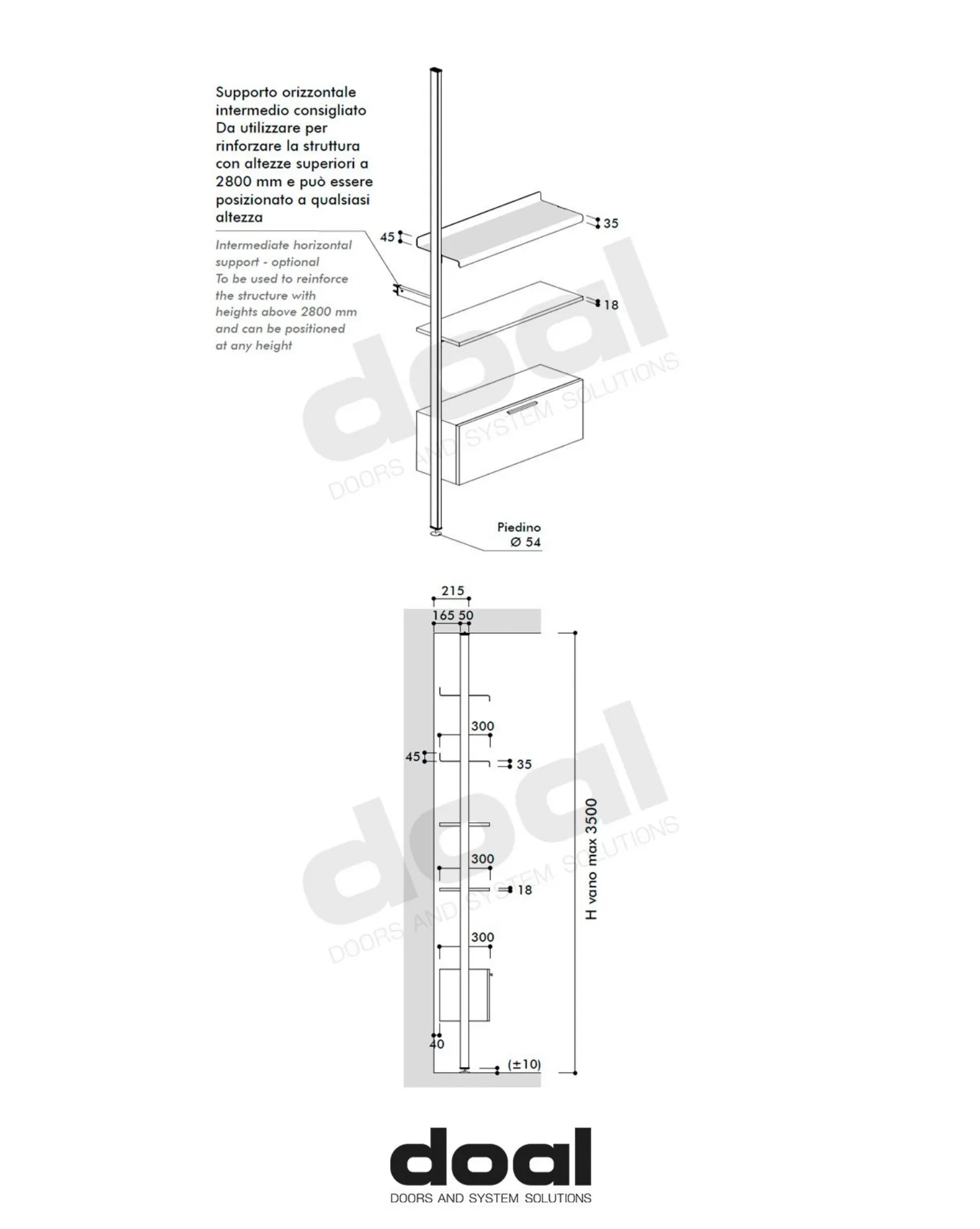 Profilo in alluminio finitura Brown con luce led, ripiani e contenitori con anta a ribalta in rovere tinto noce impiallacciato.