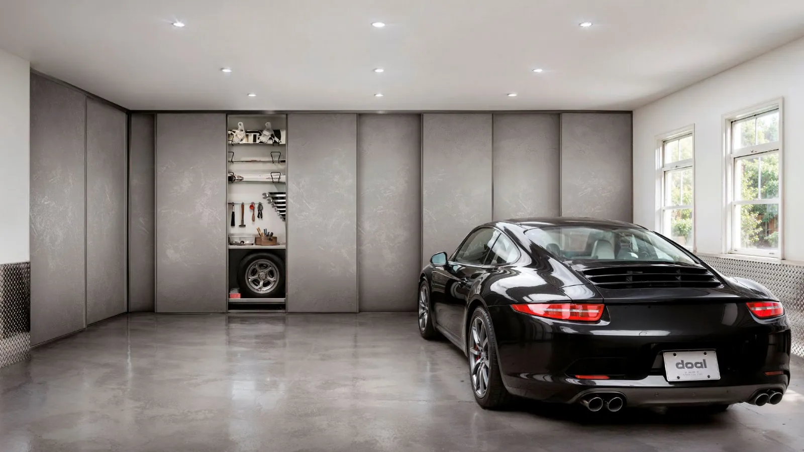 La Like.18 scorrevole a terra è un anta con profili in alluminio e pannelli nobilitati che scorre su una guida appoggiata a pavimento.