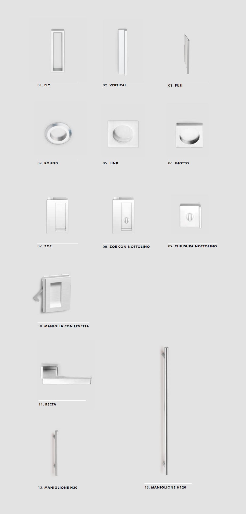 Maniglie per porte in vetro e alluminio della migliore qualità costruttiva.