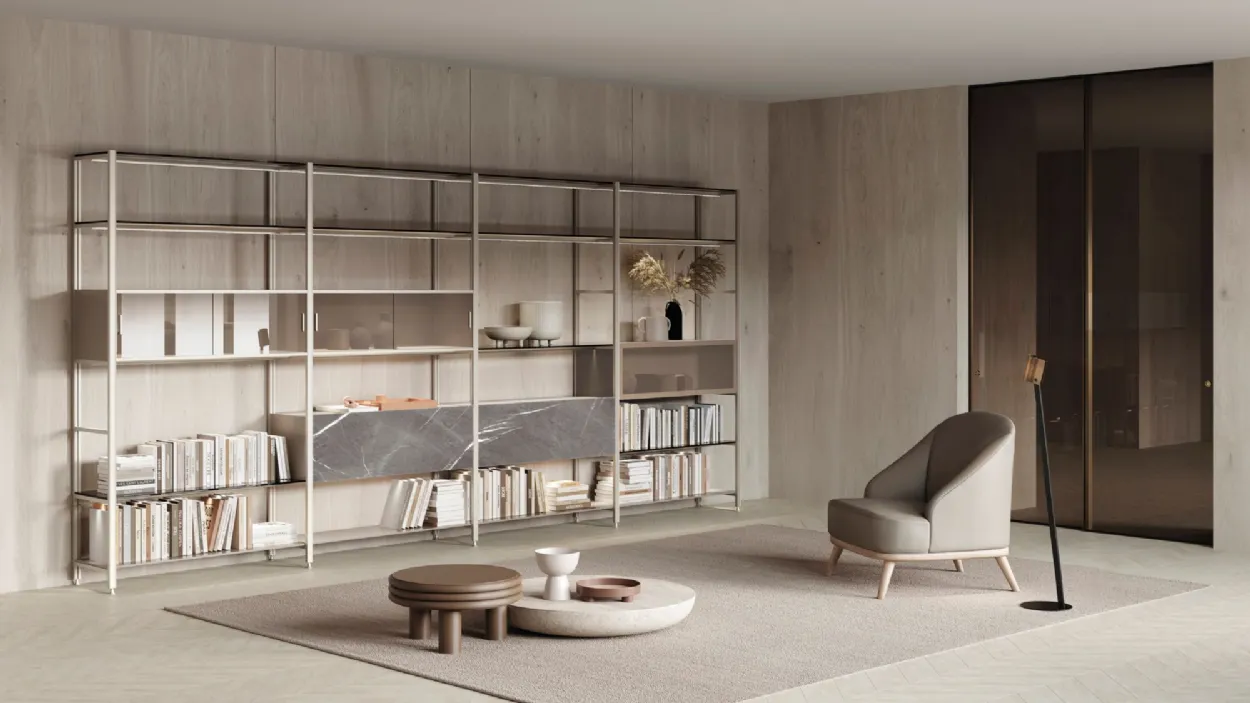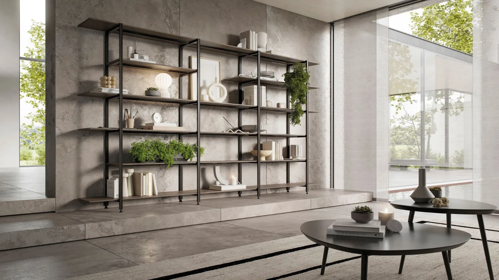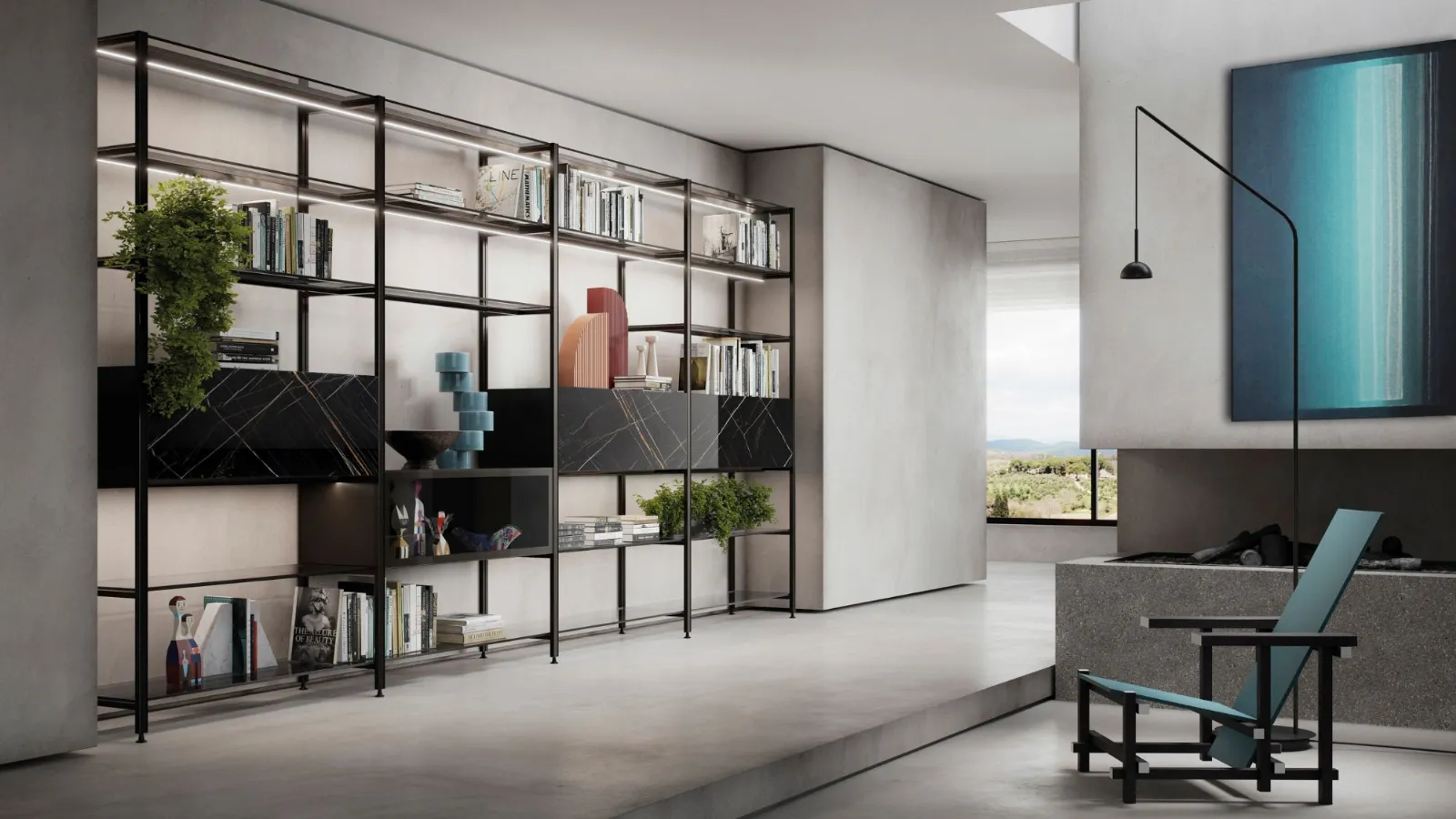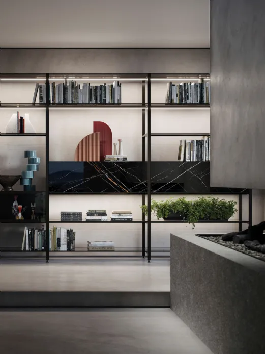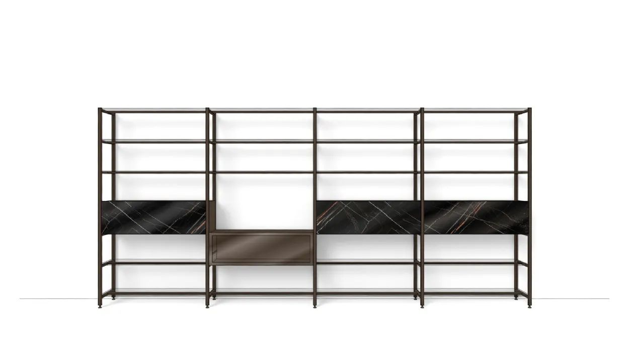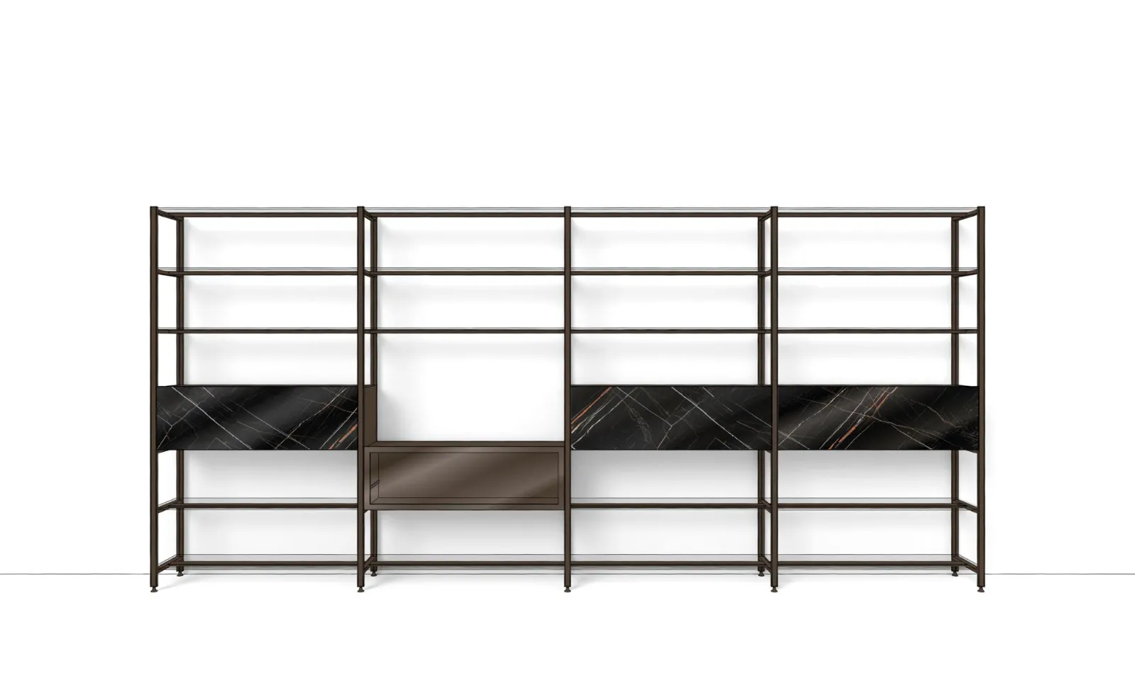 Offre una grande flessibilità quando si tratta di scegliere la dimensione e la forma della libreria e può essere personalizzata in base ai gusti e ai desideri dell'utente. Inoltre, la tipologia a muro di questa libreria offre un'elevata capacità di carico, che permette di sistemare al suo interno una vasta quantità di oggetti. Mida viene realizzata con materiali di qualità e reciclabili, come l'alluminio, il vetro ed i pannelli nobilitati laccati.