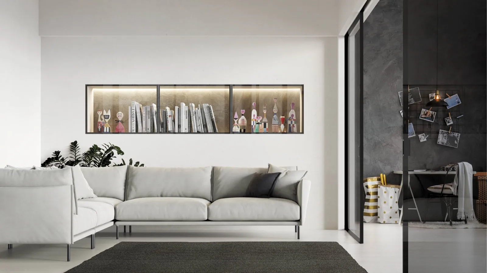 Il sistema di nicchie filo muro brevettato da Doal risulta funzionale ed estetico in una parete della propria abitazione, in quanto può essere trasformato in una comoda libreria ad incasso oppure in un raffinato contenitore di oggetti, che possono decorare la parete senza dover ricorrere a mobili o quadri. Il sistema si integra perfettamente con la progettazione di una parete in cartongesso, permette di inserire ante in vetro trasparente, satinato, reflex o a specchio e può essere arricchito ulteriormente con l’inserimento di luci a led incassate sul contenitore interno.