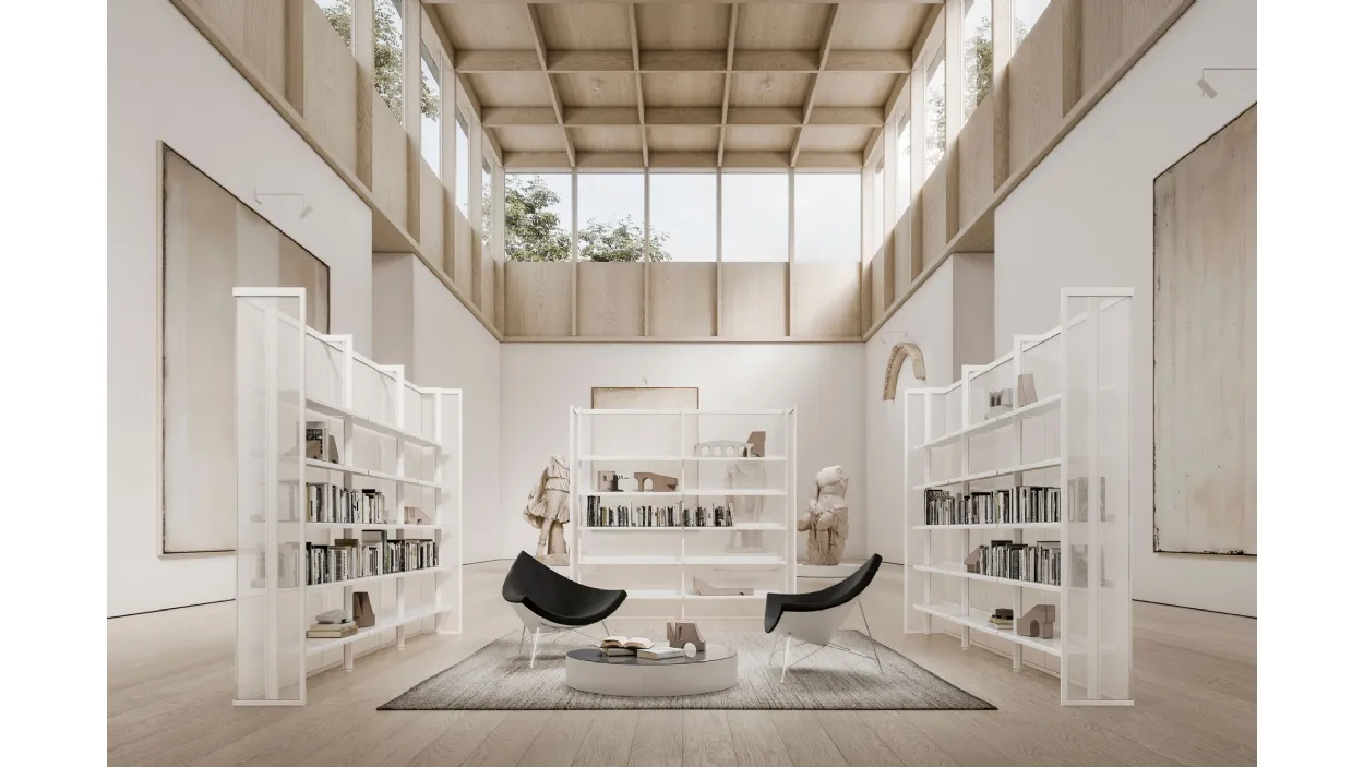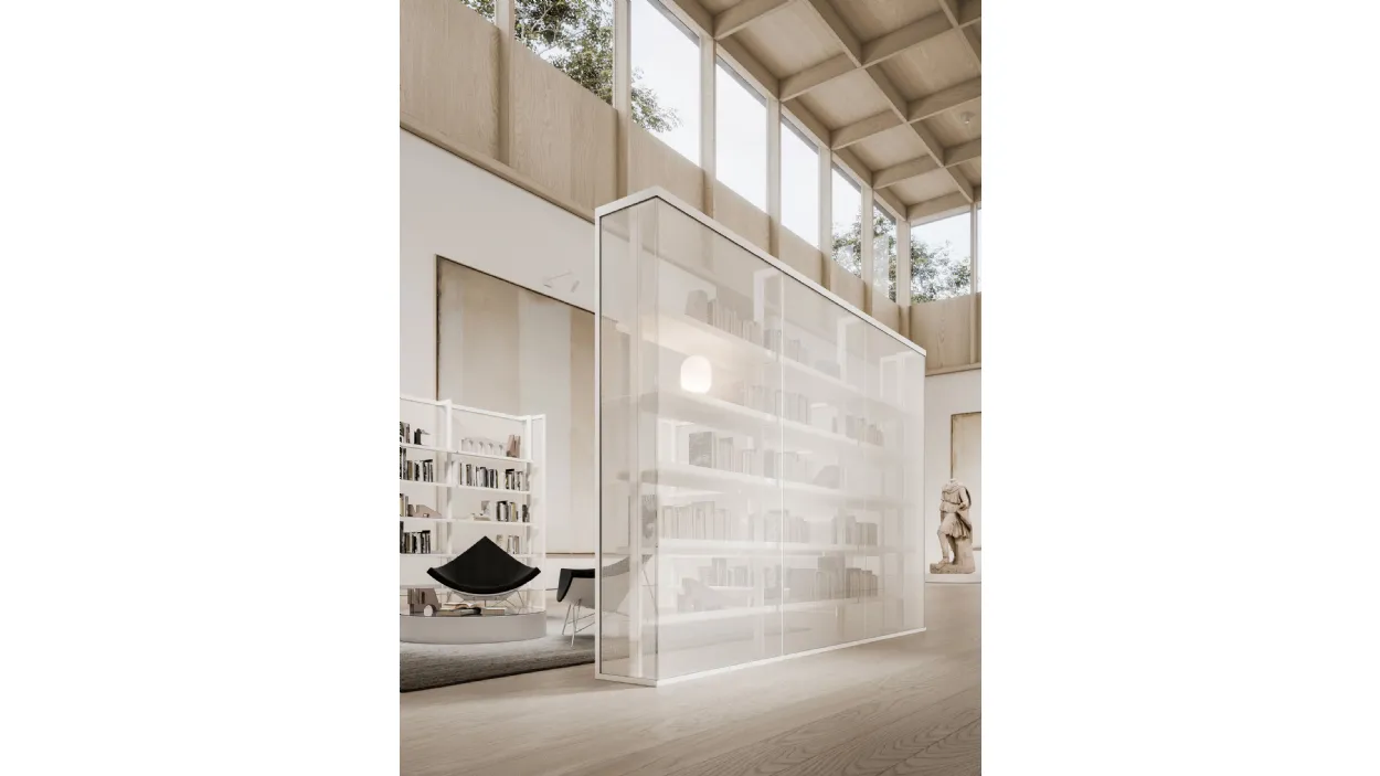 La parete Kristal è ideale per gli uffici, gli hotel, i negozi, ambienti espositivi, per le abitazioni o altri ambienti in cui si vuole creare un'atmosfera luminosa e raffinata. Kristal può essere integrata con la libreria Karin con ripiani in acciaio verniciato, ma anche con le librerie Venere e Simply, inoltre negli spazi abitativi si possono integrare anche le cabine armadio.