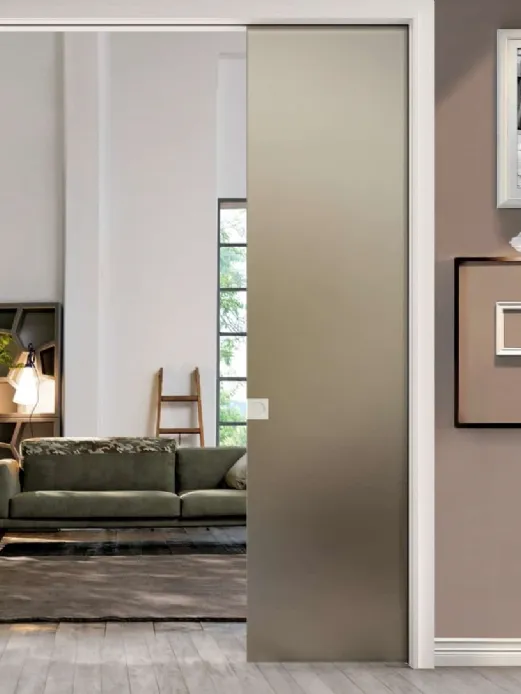 Uno dei principali pregi di queste porte è scomparire totalmente all’interno del muro lasciando completamente libero il passaggio da qualsiasi ingombro. La caratteristica di sfruttare gli spazi unita alla luce che infonde un vetro satinato, trova in questa porta, soluzioni ideali per ambienti riservati e solitamente poco illuminati come la zona bagno o un sottoscala o un ripostiglio o piccolo ufficio o una cameretta etc. Ricordiamo sempre che siamo legati alle tradizioni offrendo inoltre la possibilità di realizzare ante completamente in legno, laccate o da tinteggiare.
