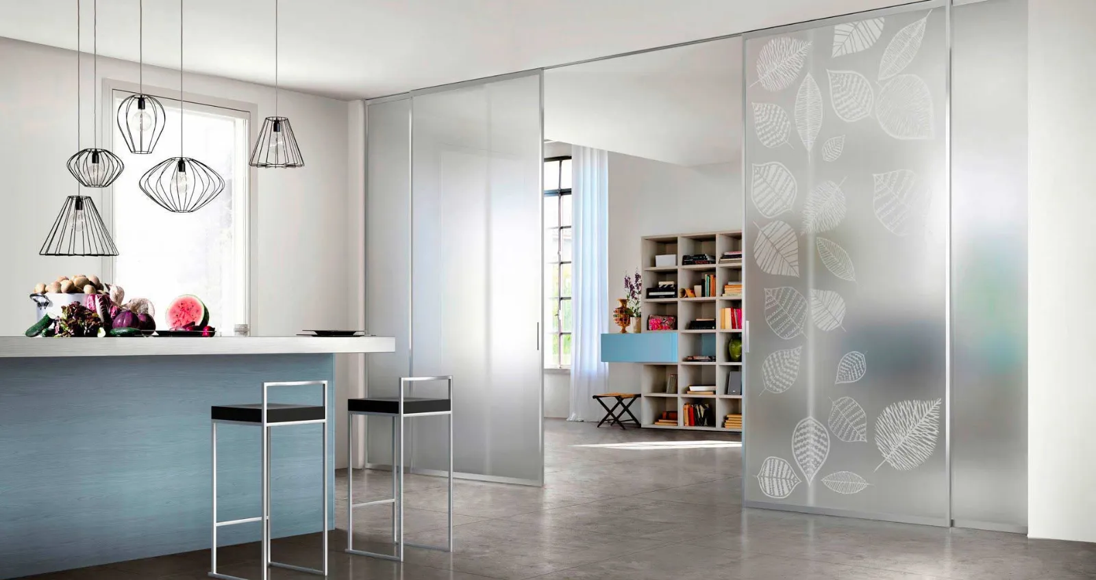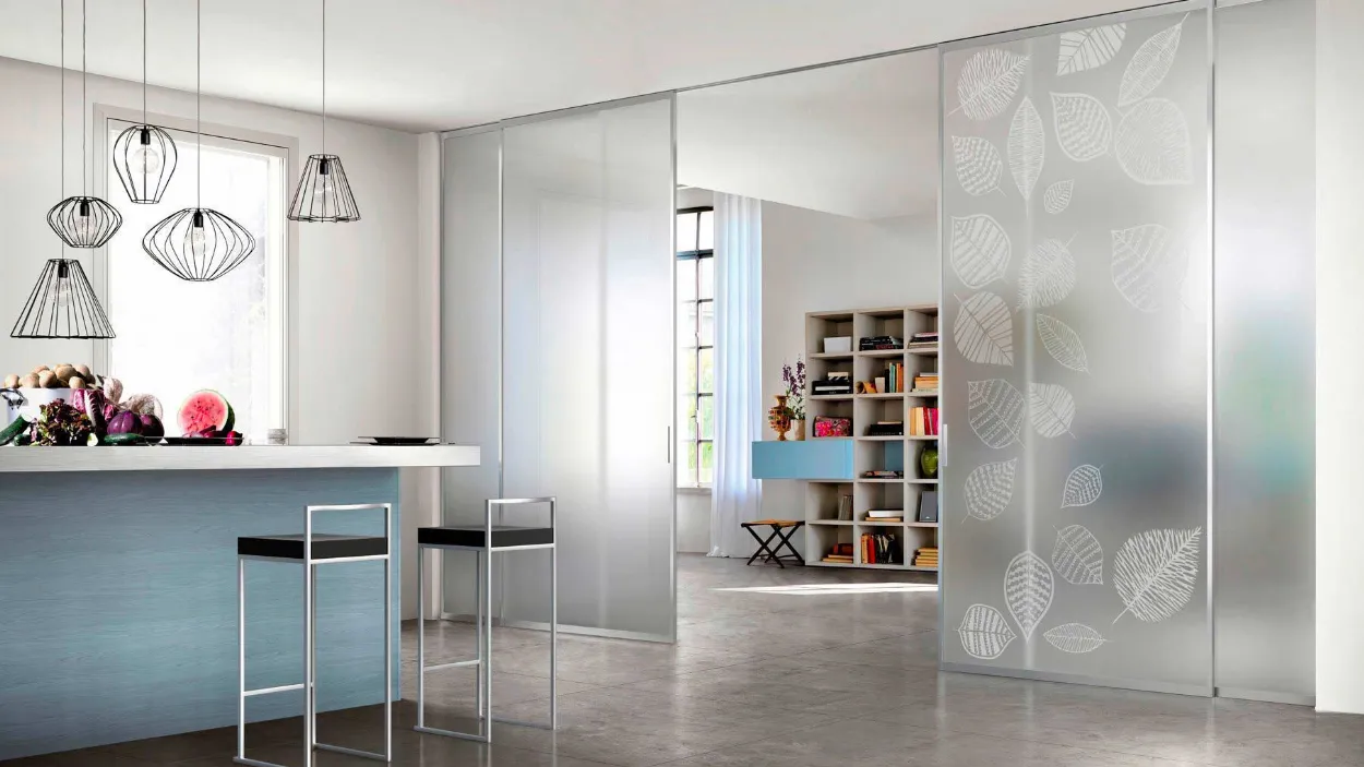 Grazie al sistema di scorrimento si ottiene la massima agibilità di quelle stesse superfici che, nel caso di una porta a battente tradizionale, sarebbero invece occupate dal raggio di apertura.