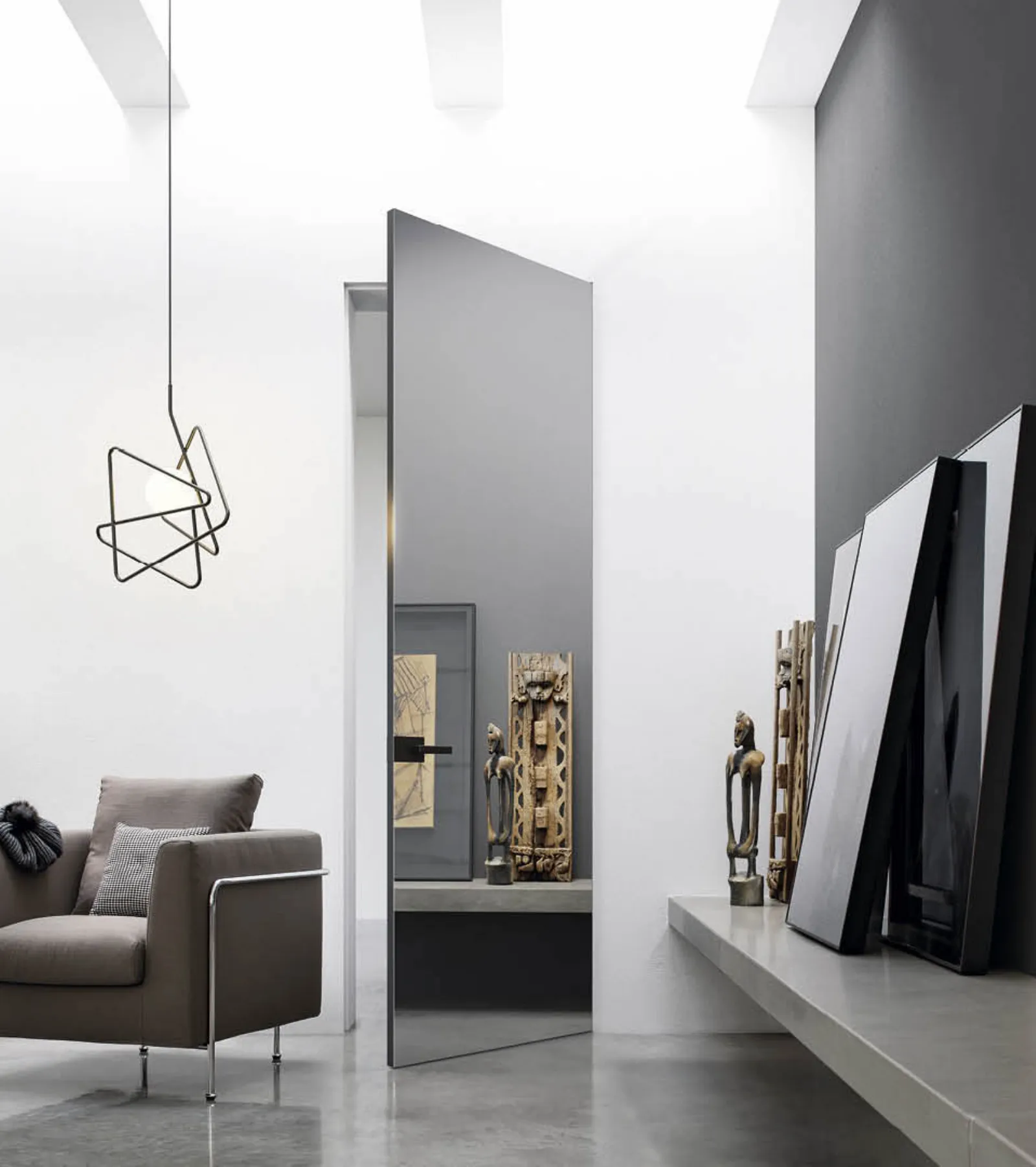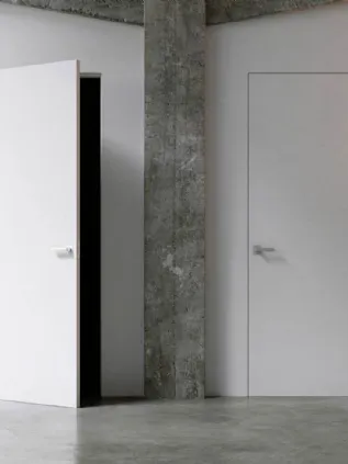 Sono caratterizzate da uno stipite in alluminio molto sottile che si installa su pareti già rifinite, senza bisogno di opere murarie. Questa soluzione è possibile grazie all’assoluta stabilità garantita dall’alluminio e rappresenta quindi una soluzione molto esclusiva e distintiva, non realizzabile con stipiti in legno.