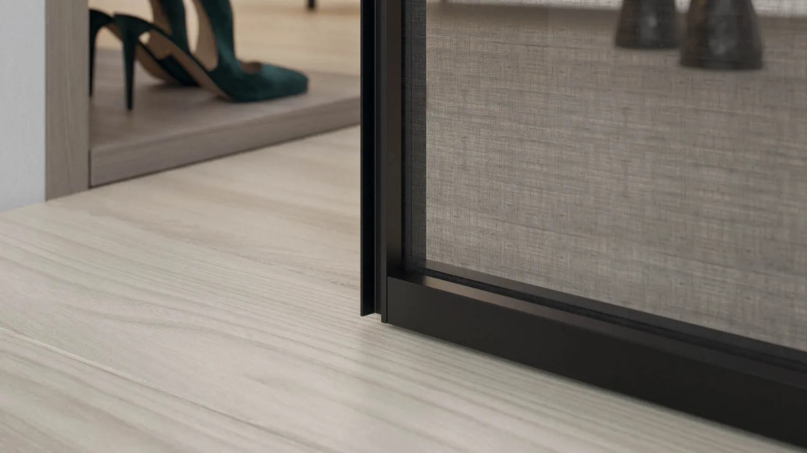 Le porte scorrevoli a terra sono perfette per cabine armadio, ripostigli, armadiature garage o dispense per la cucina o nicchie nei bagni. Si utilizzano principalmente per chiudere e nascondere delle pareti contenitive. A terra significa che il binario viene montato ed ancorato al pavimento.