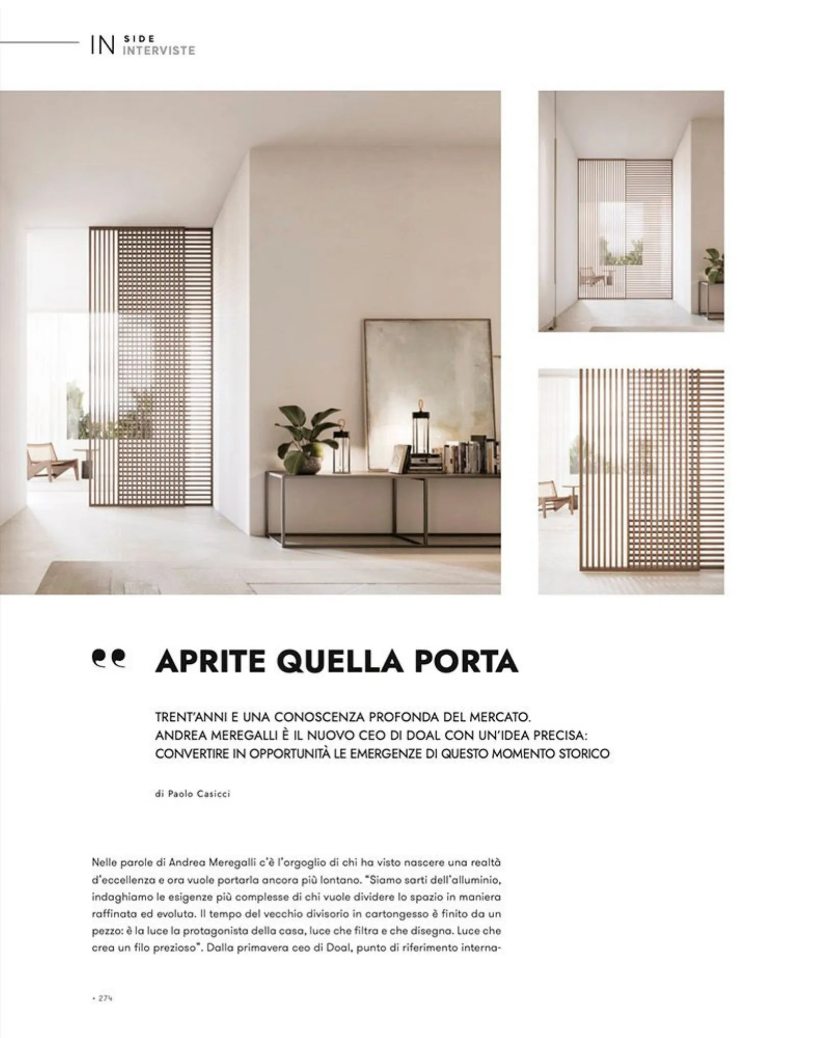Nelle parole di Andrea Meregalli c’è l’orgoglio di chi ha visto nascere una realtà d’eccellenza e ora vuole portarla ancora più lontano. “Siamo sarti dell’alluminio, indaghiamo le esigenze più complesse di chi vuole dividere lo spazio in maniera raffinata ed evoluta. Il tempo del vecchio divisorio in cartongesso è finito da un pezzo: è la luce la protagonista della casa, luce che filtra e che disegna. Luce che crea un filo prezioso”.