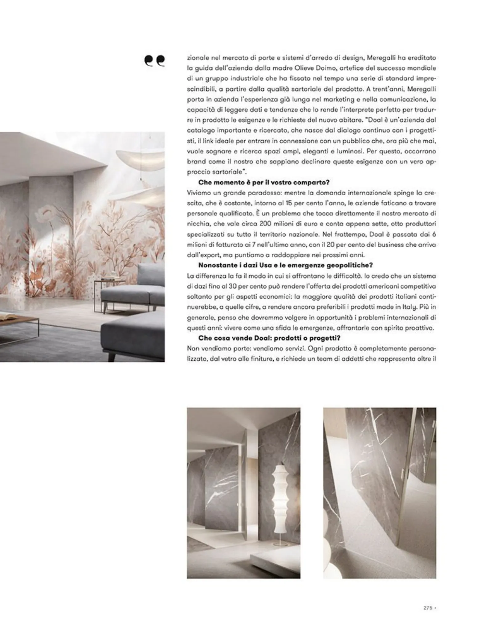 “Doal è un’azienda dal catalogo importante e ricercato, che nasce dal dialogo continuo con i progettisti, il link ideale per entrare in connessione con un pubblico che, ora più che mai, vuole sognare e ricerca spazi ampi, eleganti e luminosi. Per questo, occorrono brand come il nostro che sappiano declinare queste esigenze con un vero approccio sartoriale”.