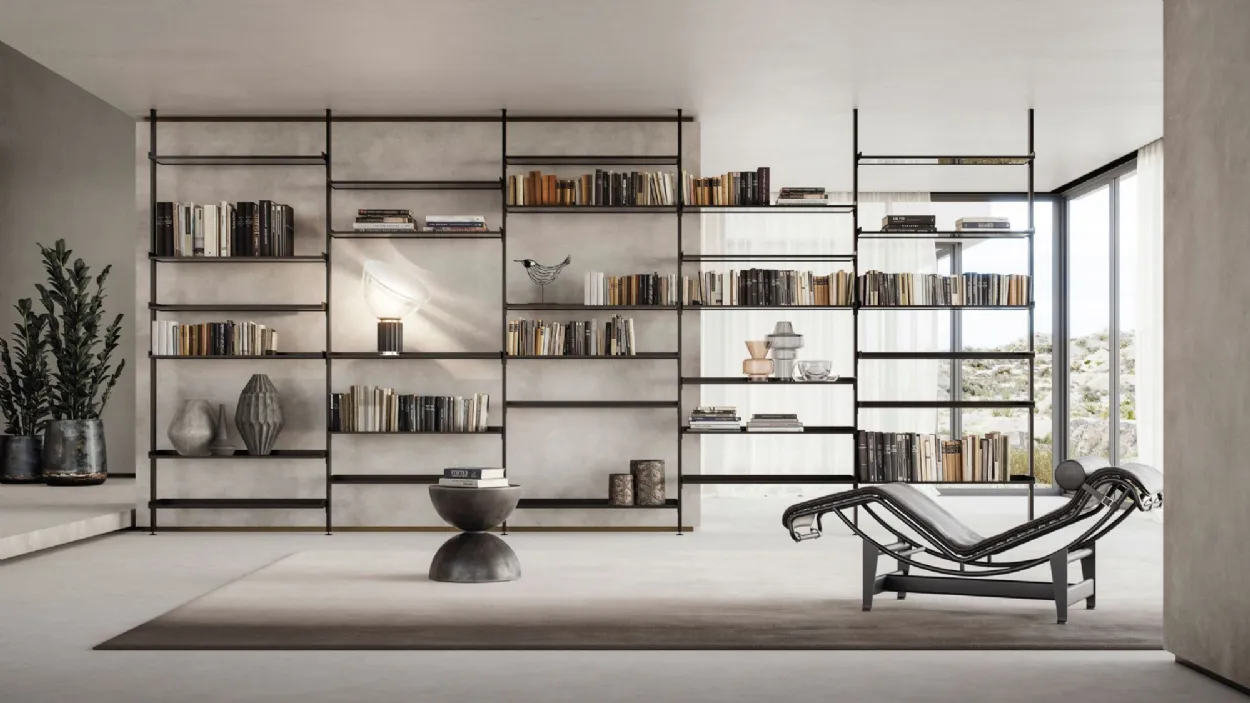 La sua struttura portante è in metallo rivestito in polvere, che la rende resistente e durevole. La sua finitura opaca in bianco o nero, dona alla libreria un aspetto moderno ed elegante. La libreria è dotata di un sistema di ripiani regolabili, per consentire una maggiore versatilità e adattarsi a qualsiasi spazio.